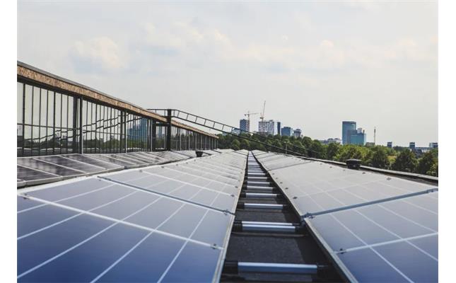 Laddplats för elektriska lastbilar, solkraft och batterilager