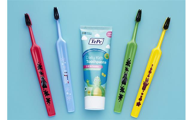 Nyligen lanserade TePe även en serie skonsamma tandkrämer, TePe Daily™ Baby och Kids, med Bolibompamotiv. Tandkrämerna har åldersanpassad fluoridmängd och passar från första tanden. De innehåller inga onödiga tillsatser, är fria från titandioxid och märkta med Bra Miljöval.